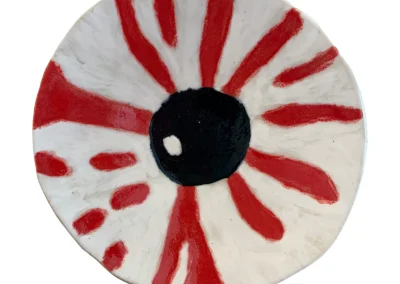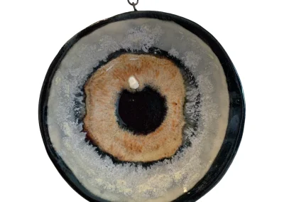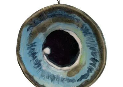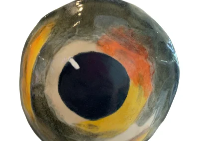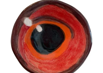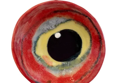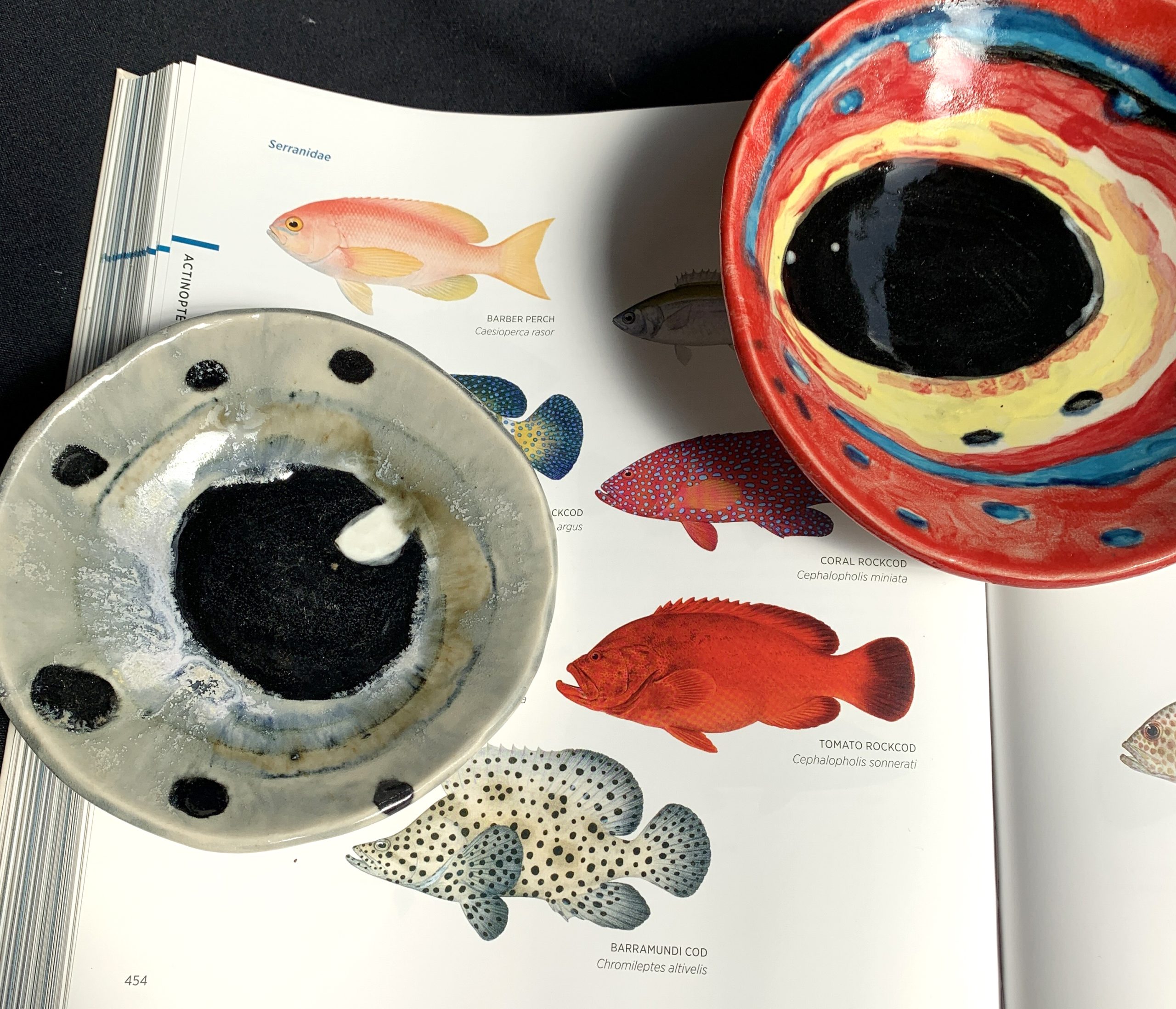Whilst browsing through the remarkable reference book Swainston’s Fishes of Australia, the artist became captivated by the extraordinary diversity, colour, and intricate structures found within the eyes of Australian fish species. What began as a simple moment of curiosity grew into a sustained creative investigation, exploring how these extraordinary visual organs might be translated into the language of ceramics. Fish eyes—often overlooked despite their evolutionary sophistication—offered a perfect subject through which to examine the intersection of scientific observation and artistic imagination.